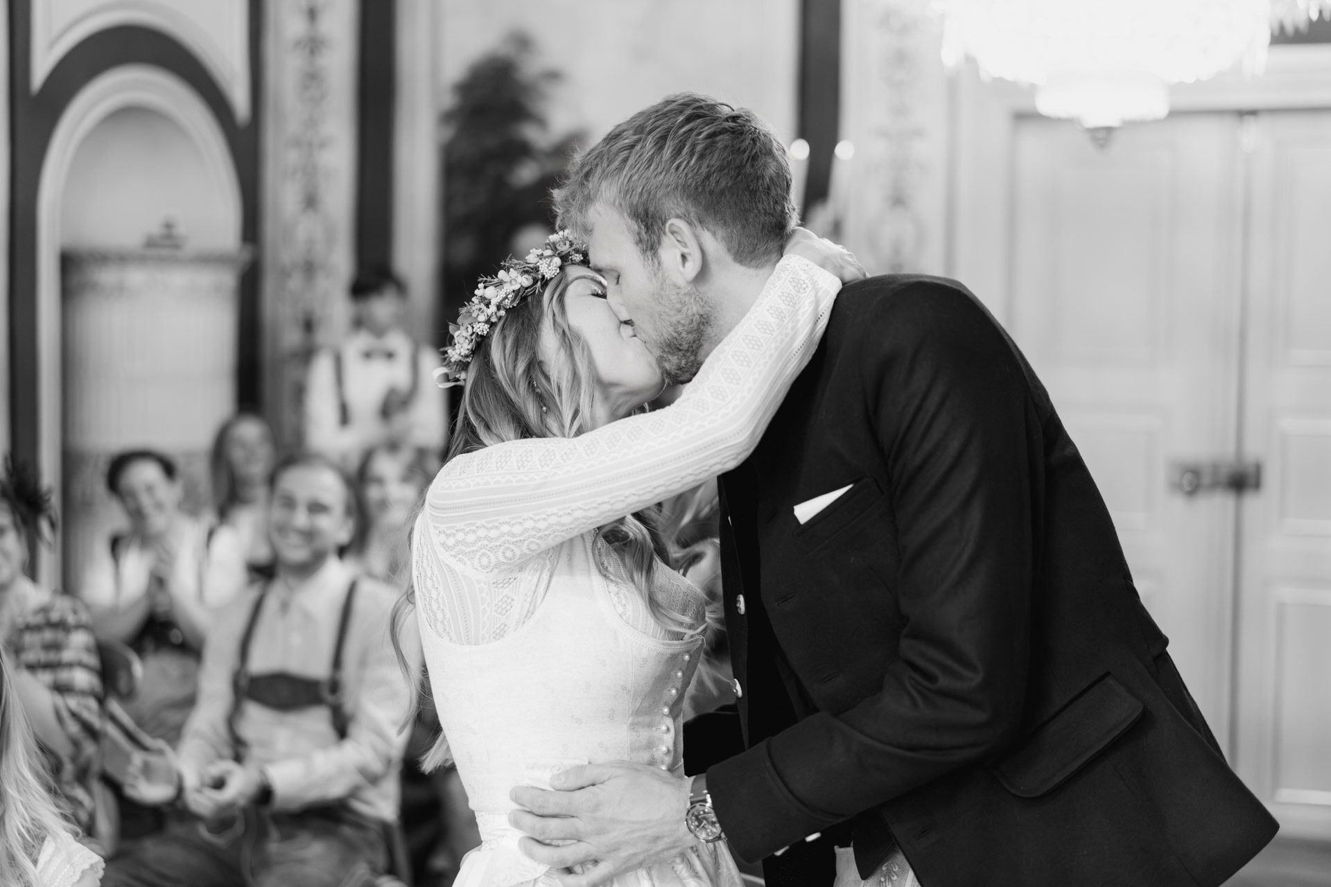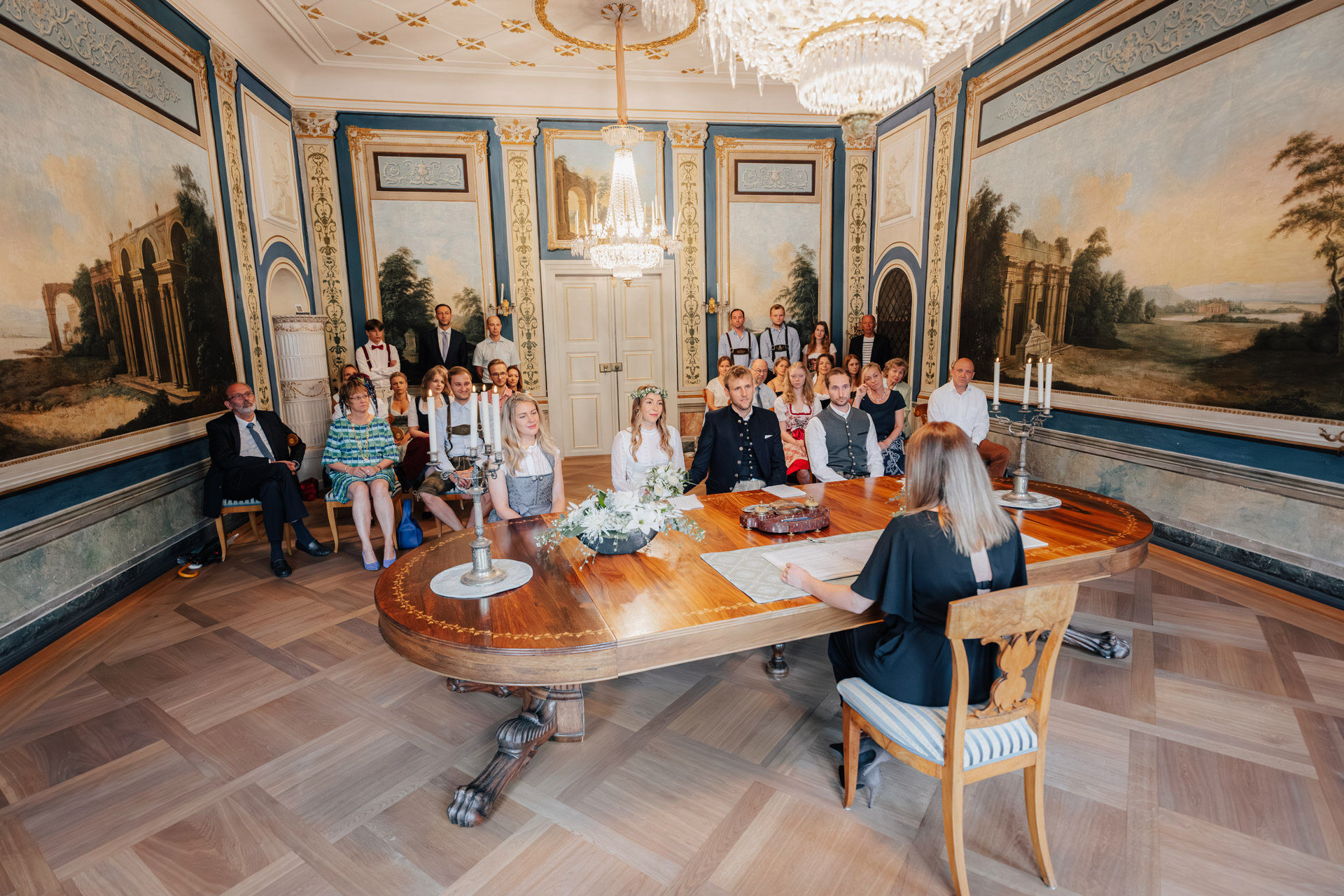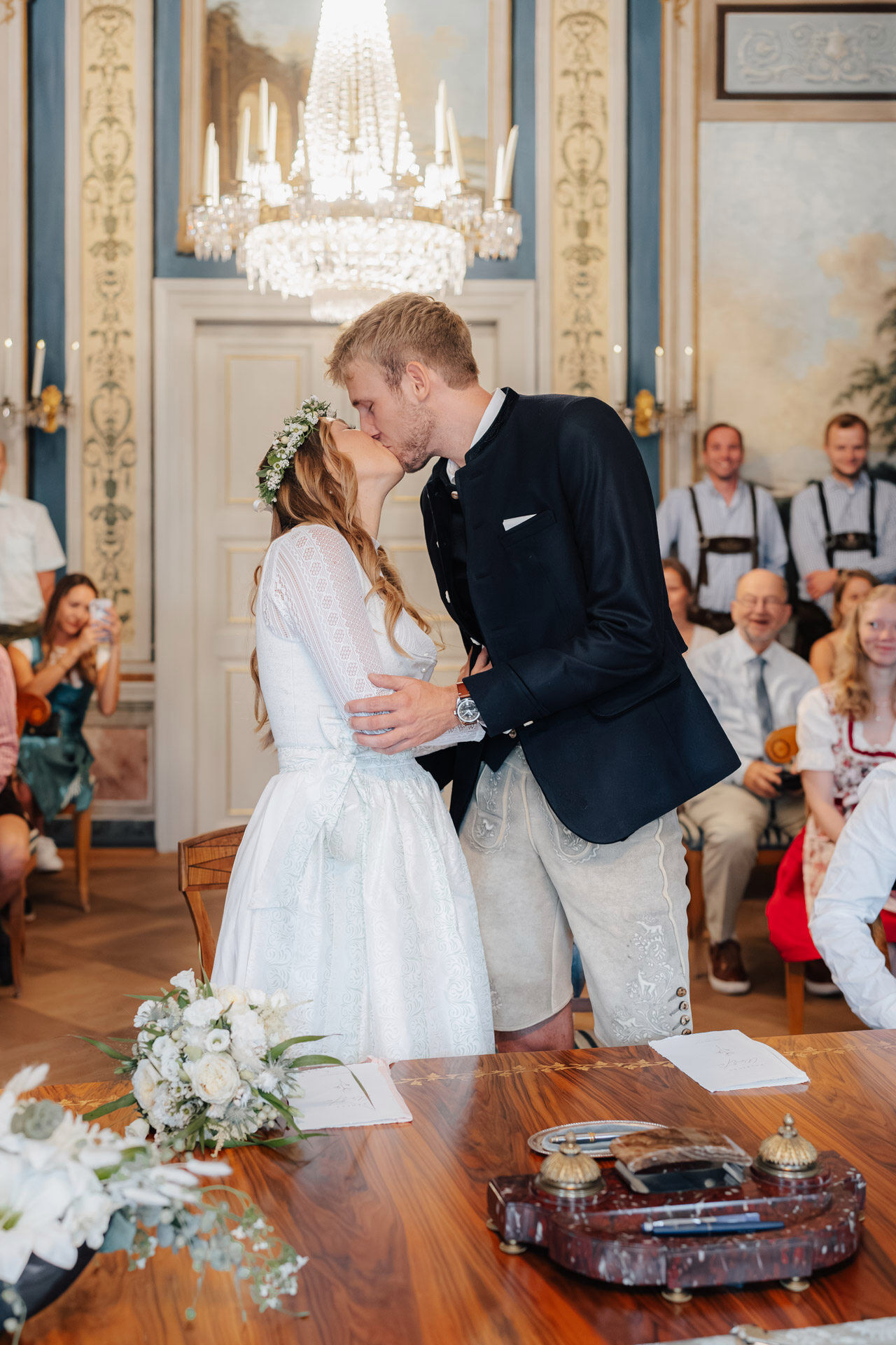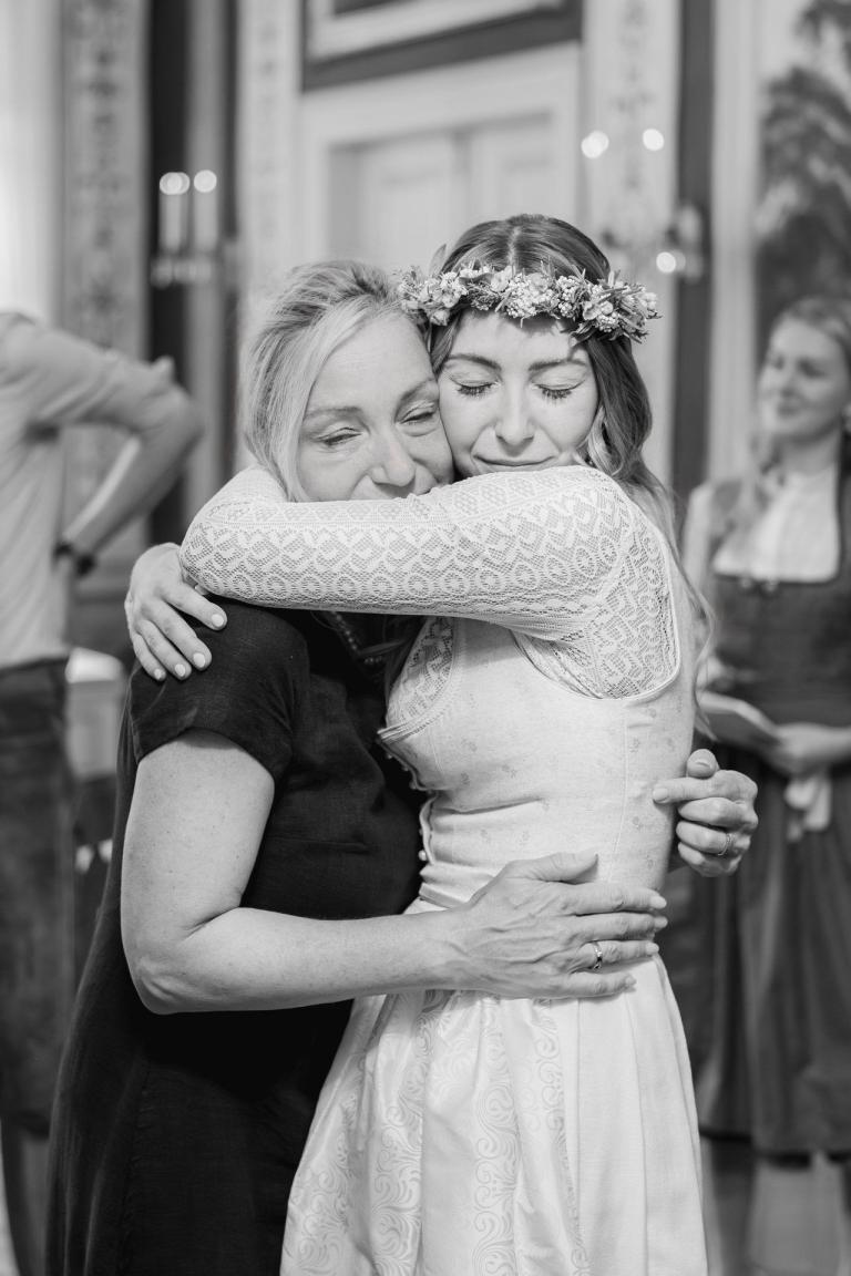 Kulisse für Trauungen und Hochzeitsfeiern im Herzen der Stadt. Der Trausaal, mit seinen beeindruckenden Wandmalereien und kunstvollen Verzierungen, verlieh der Zeremonie eine ganz besondere und einzigartige Atmosphäre. Die emotionalen Momente während der Trauung, vor allem der Austausch der Eheversprechen, sorgten bei allen Anwesenden für Gänsehaut – und ein paar Tränen der Rührung. Es war einfach wunderschön zu sehen, wie viel Liebe, Vertrauen und Verbundenheit Xenia und Patrick miteinander teilen und ihre Gefühle füreinander ausdrücken. Diese bewegende und unvergessliche Trauung wird sicherlich allen Gästen und dem Brautpaar lange in Erinnerung bleiben.