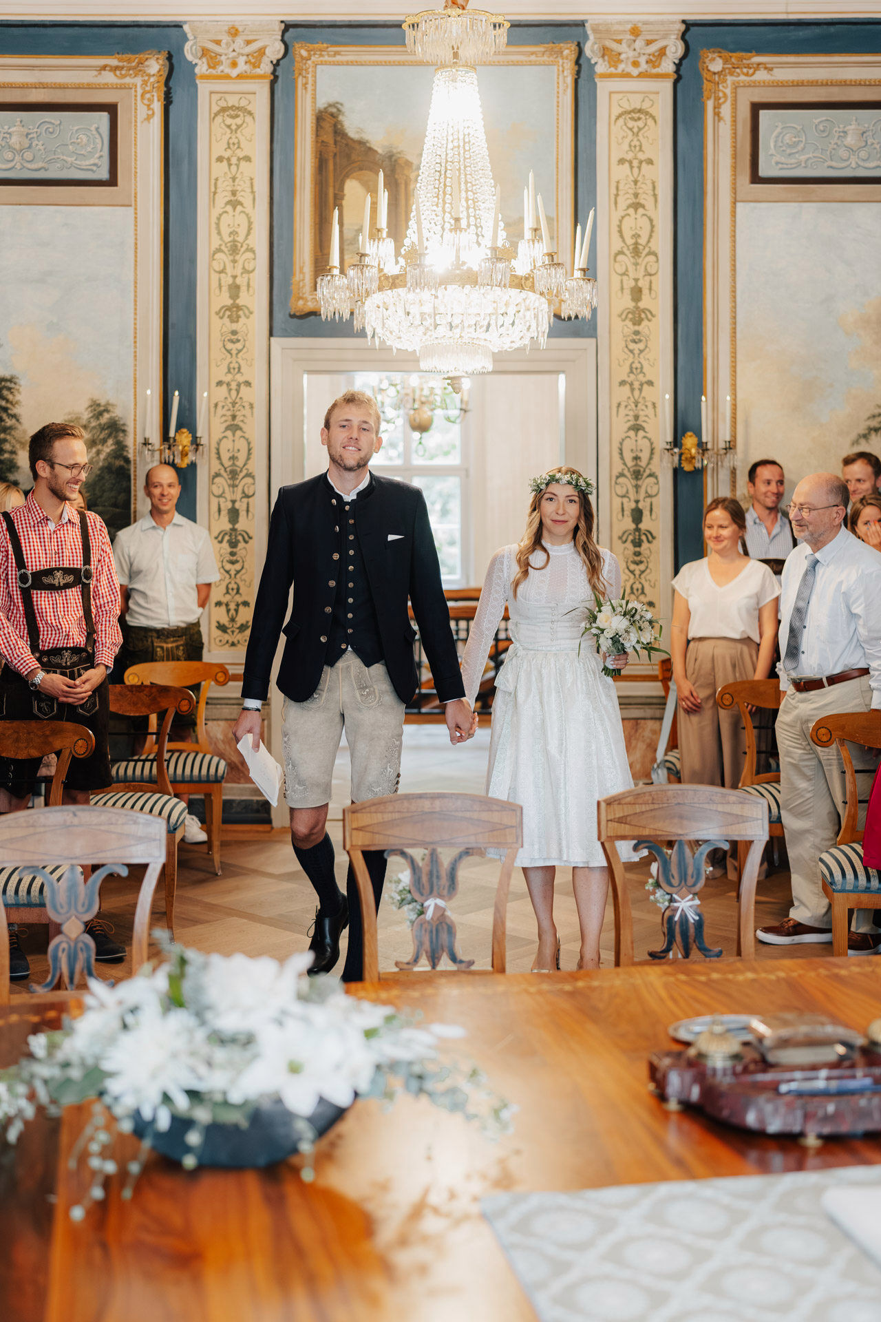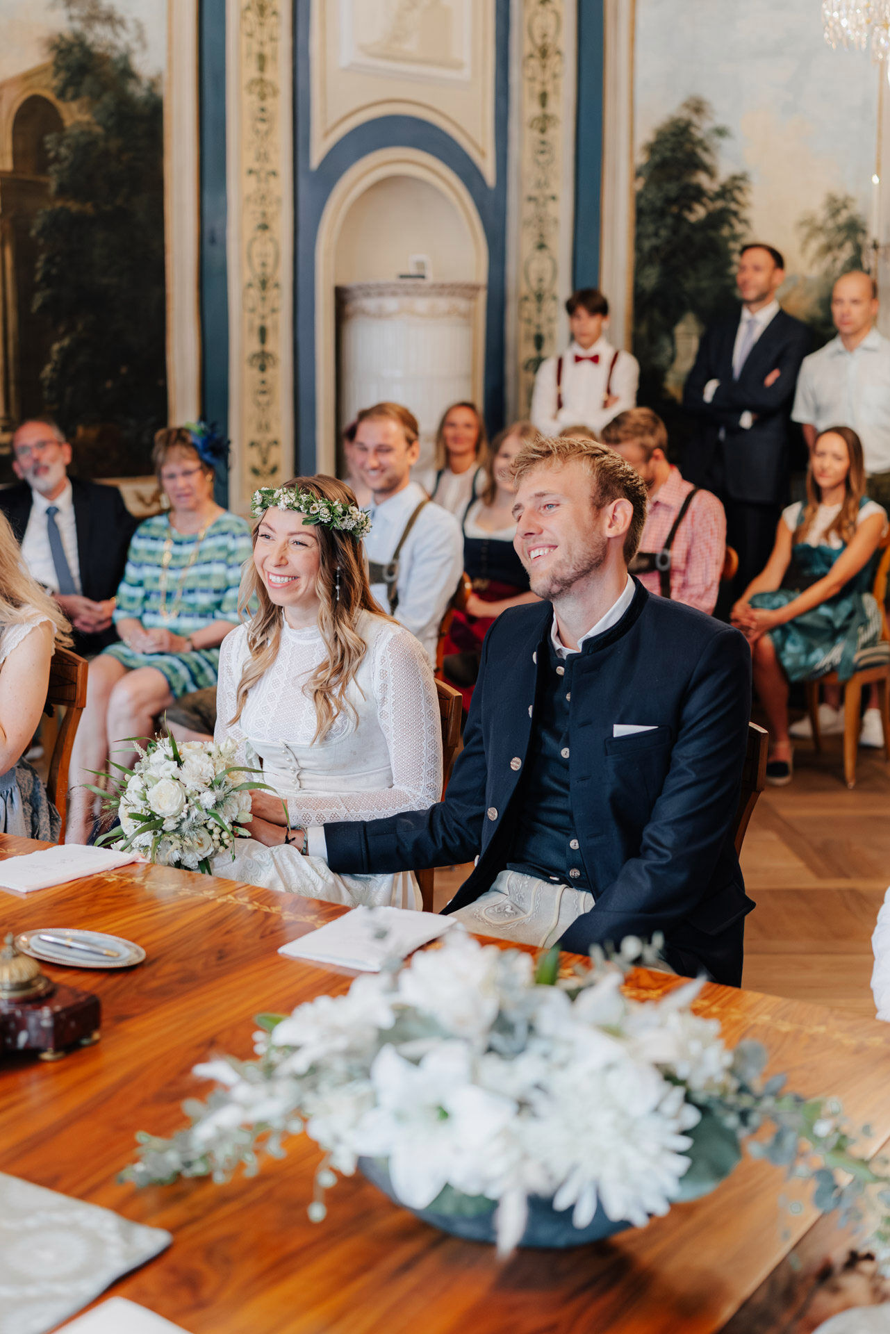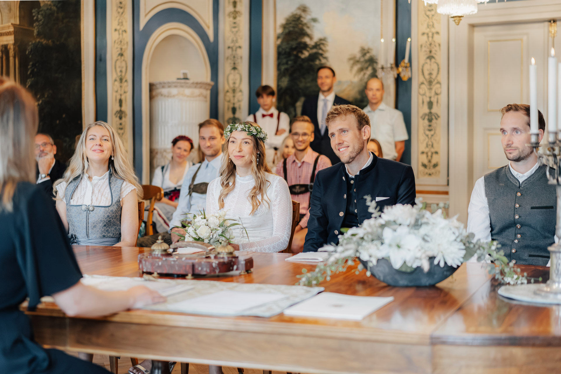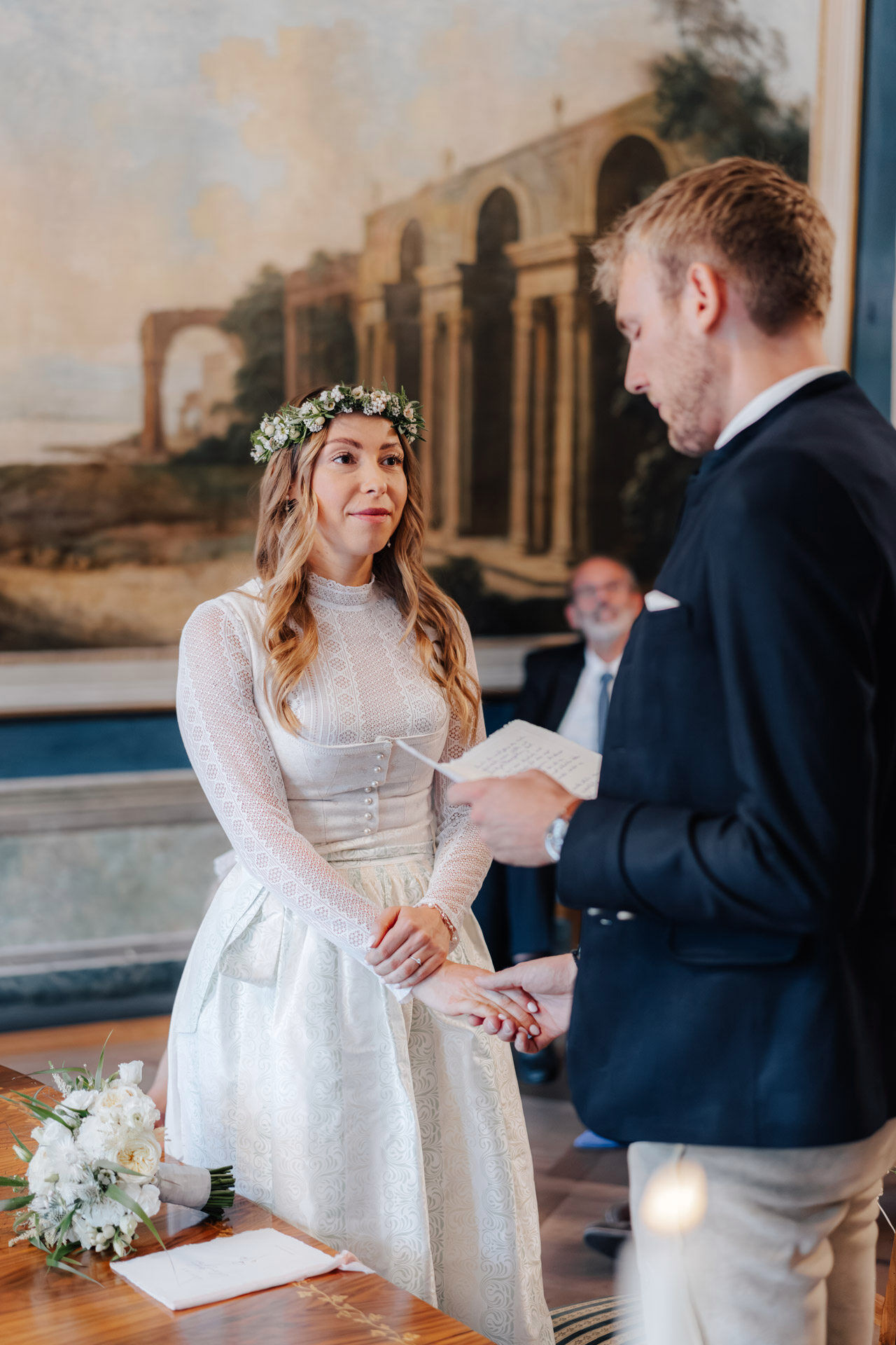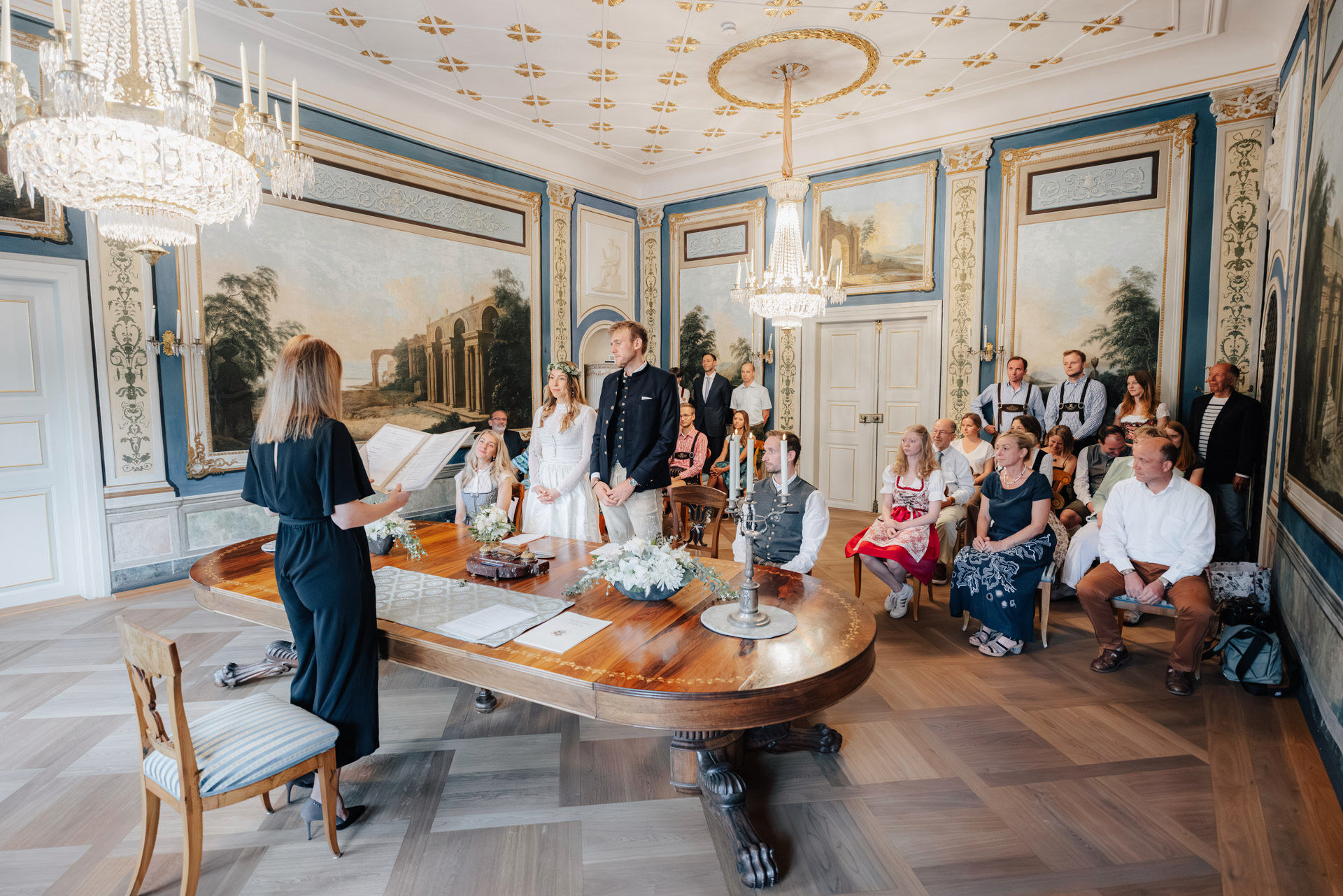 Kulisse für Trauungen und Hochzeitsfeiern im Herzen der Stadt. Der Trausaal, mit seinen beeindruckenden Wandmalereien und kunstvollen Verzierungen, verlieh der Zeremonie eine ganz besondere und einzigartige Atmosphäre. Die emotionalen Momente während der Trauung, vor allem der Austausch der Eheversprechen, sorgten bei allen Anwesenden für Gänsehaut – und ein paar Tränen der Rührung. Es war einfach wunderschön zu sehen, wie viel Liebe, Vertrauen und Verbundenheit Xenia und Patrick miteinander teilen und ihre Gefühle füreinander ausdrücken. Diese bewegende und unvergessliche Trauung wird sicherlich allen Gästen und dem Brautpaar lange in Erinnerung bleiben.