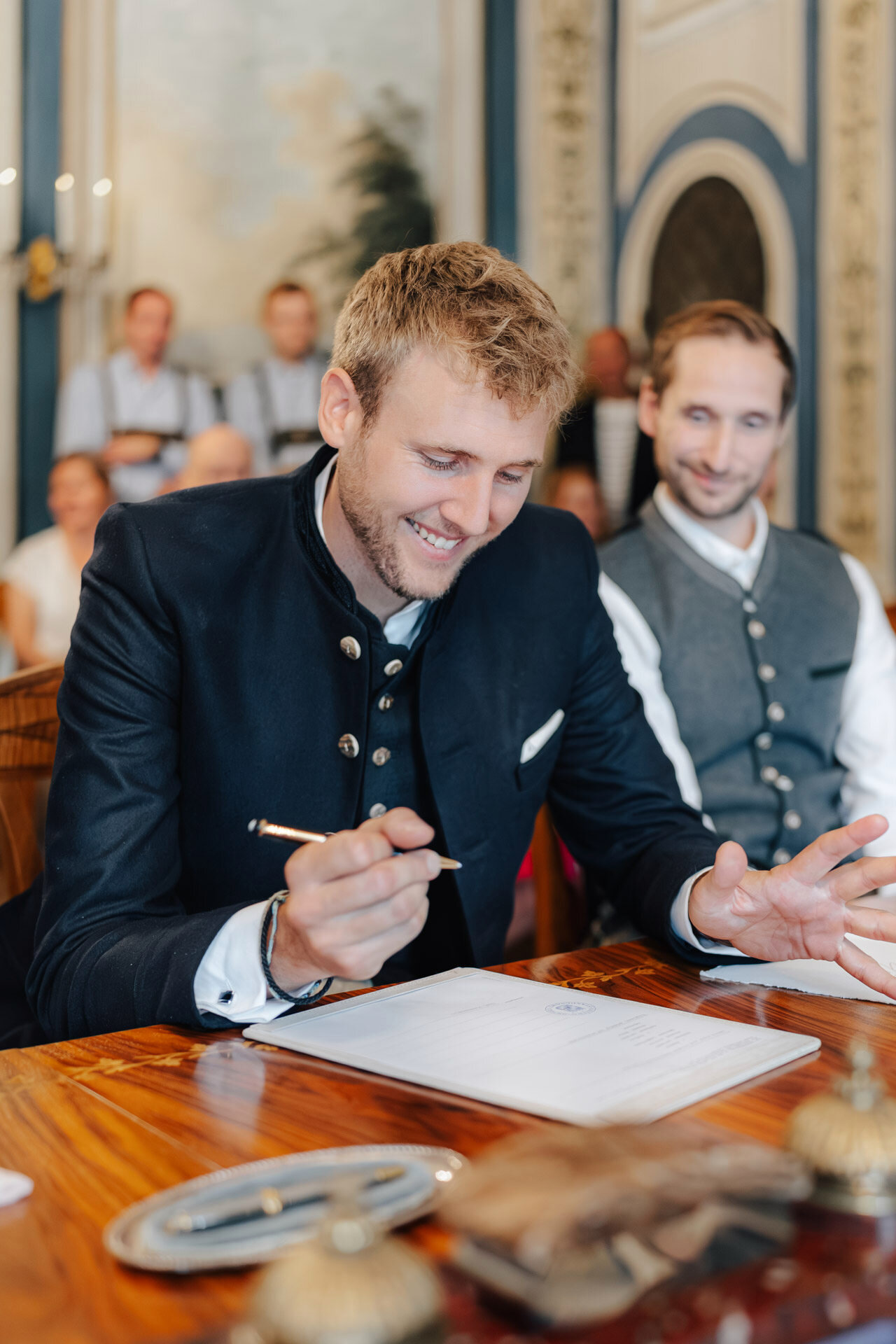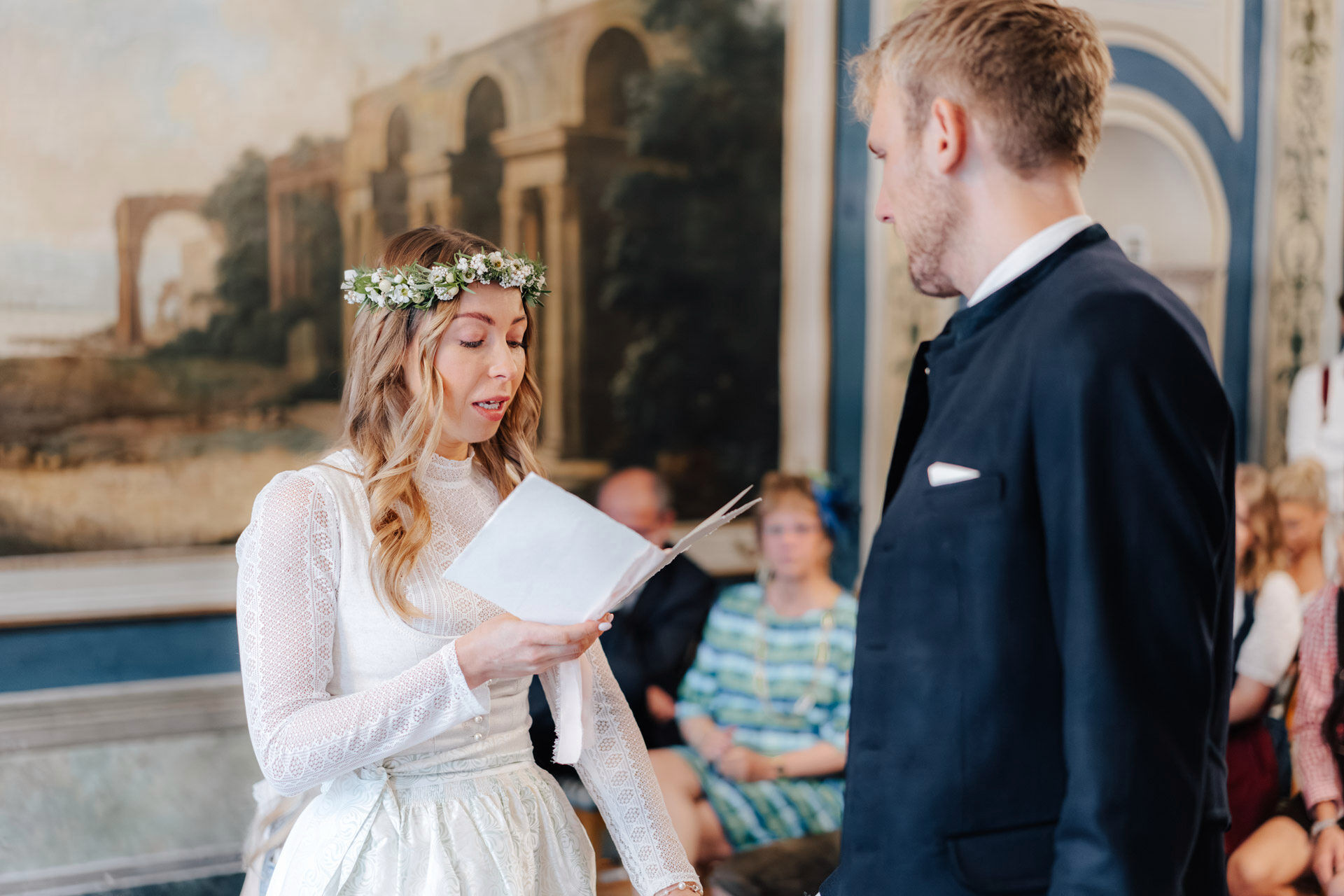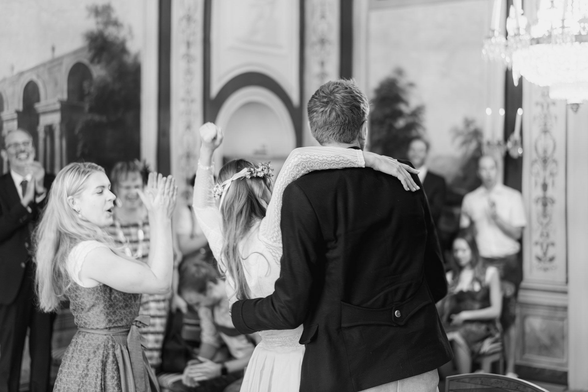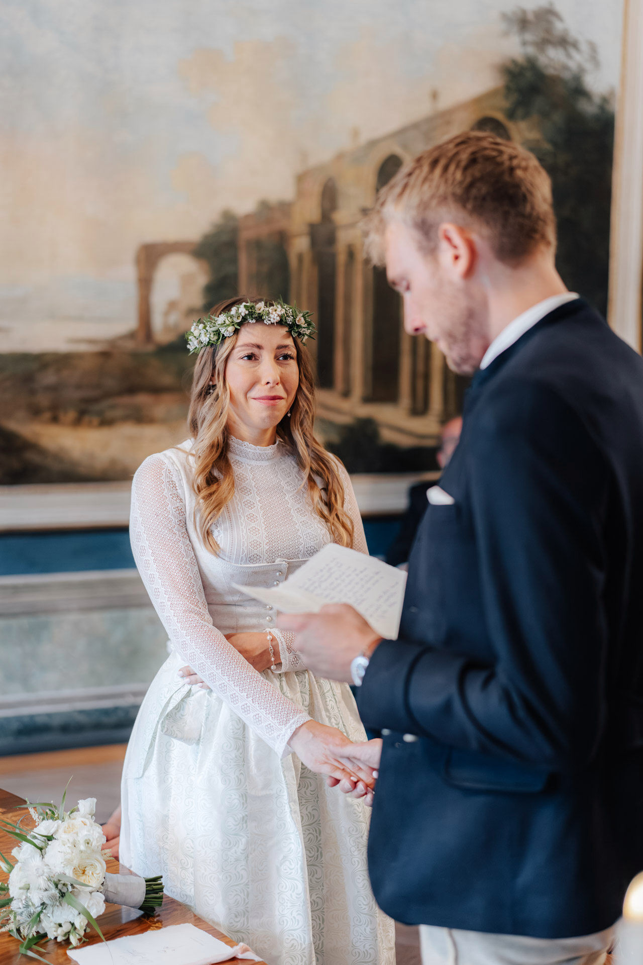 Kulisse für Trauungen und Hochzeitsfeiern im Herzen der Stadt. Der Trausaal, mit seinen beeindruckenden Wandmalereien und kunstvollen Verzierungen, verlieh der Zeremonie eine ganz besondere und einzigartige Atmosphäre. Die emotionalen Momente während der Trauung, vor allem der Austausch der Eheversprechen, sorgten bei allen Anwesenden für Gänsehaut – und ein paar Tränen der Rührung. Es war einfach wunderschön zu sehen, wie viel Liebe, Vertrauen und Verbundenheit Xenia und Patrick miteinander teilen und ihre Gefühle füreinander ausdrücken. Diese bewegende und unvergessliche Trauung wird sicherlich allen Gästen und dem Brautpaar lange in Erinnerung bleiben.