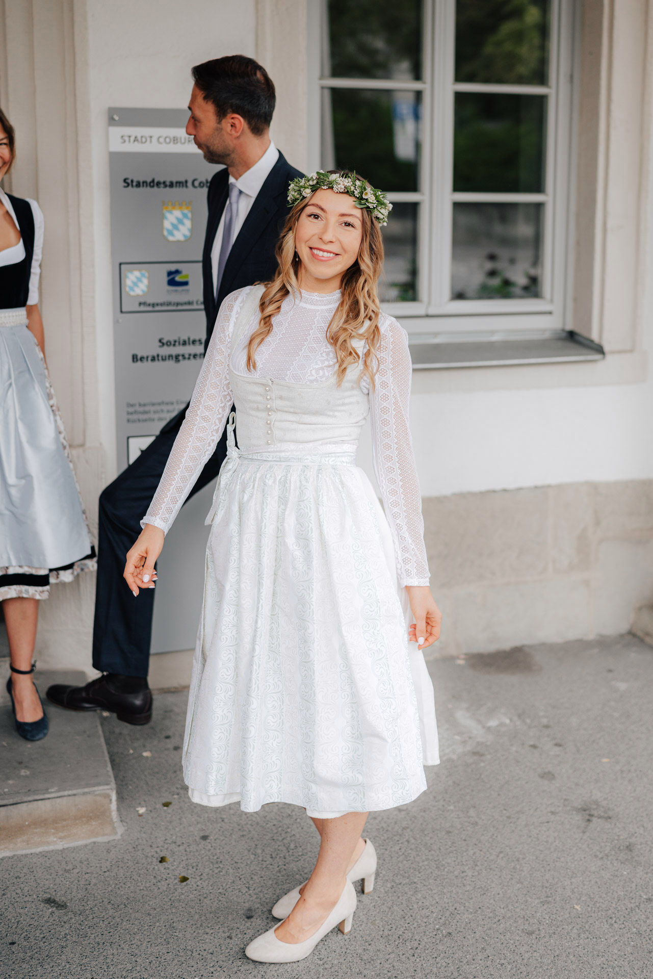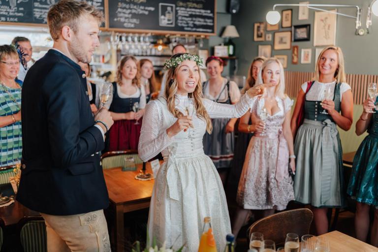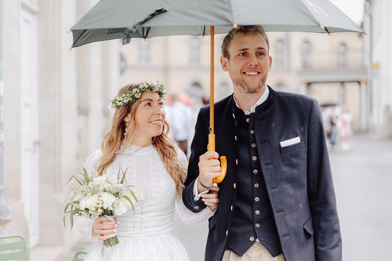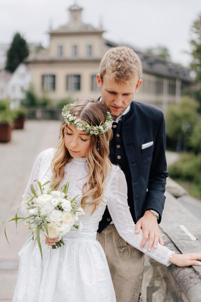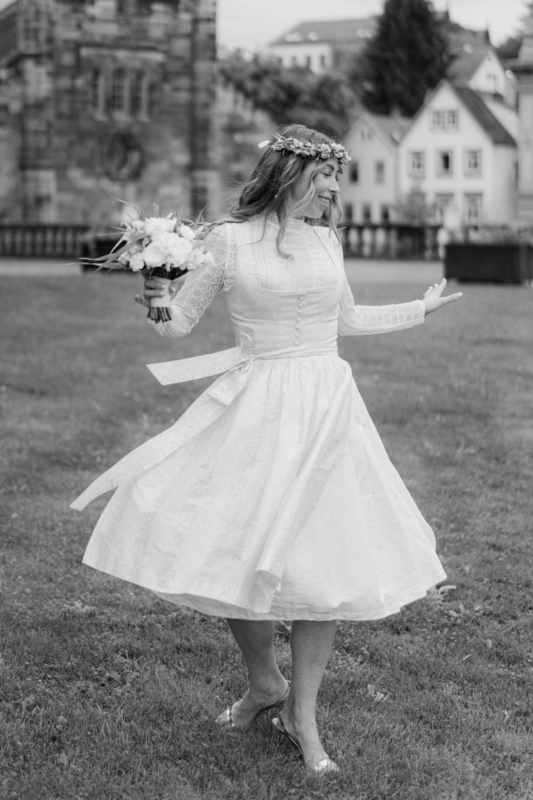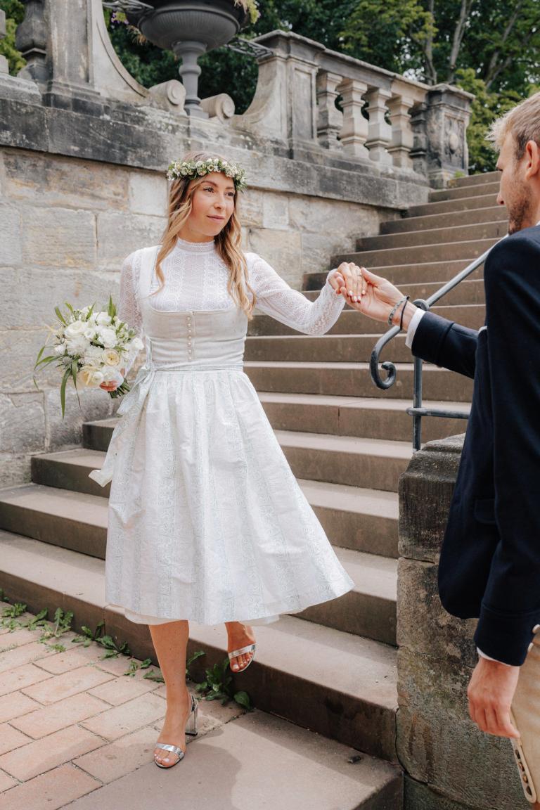 Xenia und Patrick haben sich im Sommer 2023 im Standesamt Coburg, genauer gesagt im charmanten Bürglaßschlösschen, trauen lassen. Die beiden haben sich für diesen besonderen Tag in schicke bayerische Tracht geworfen – Xenia in einem eleganten Dirndl und Patrick in traditioneller Tracht mit Lederhosen.